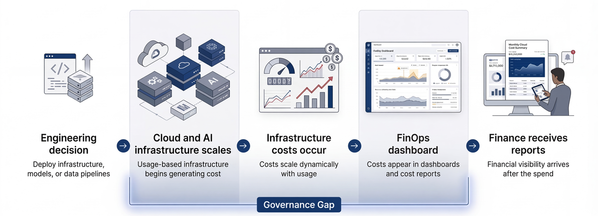 A Financial Control Plane introduces a governance layer between finance and engineering.Budgets, approvals, and financial policies operate at the level where infrastructure decisions are made.This allows organizations to scale cloud and AI infrastructure without losing financial control.
